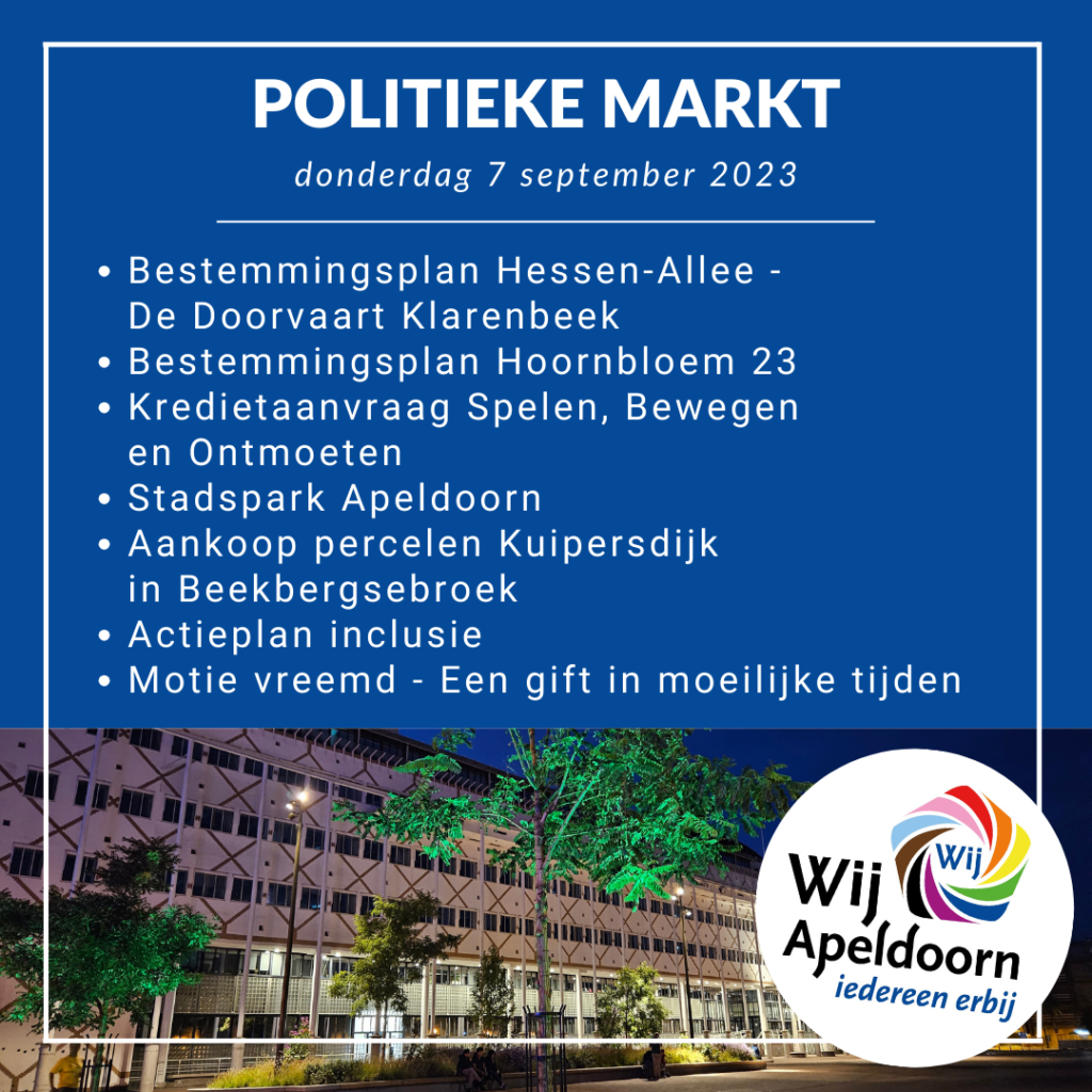 Kijk voor de gehele agenda inclusief tijden, locaties en documenten in het Raadsinformatiesysteem van gemeente Apeldoorn: RIS.