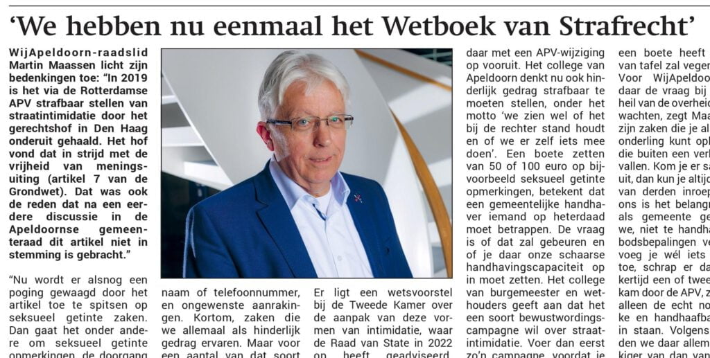Meerdere partijen waren kritisch over de toevoeging, maar uiteindelijk stemde alleen de fractie van WijApeldoorn tegen. Martin legt dit uit in het artikel dat op 22 februari in de Stedendriehoek verschijnt.
